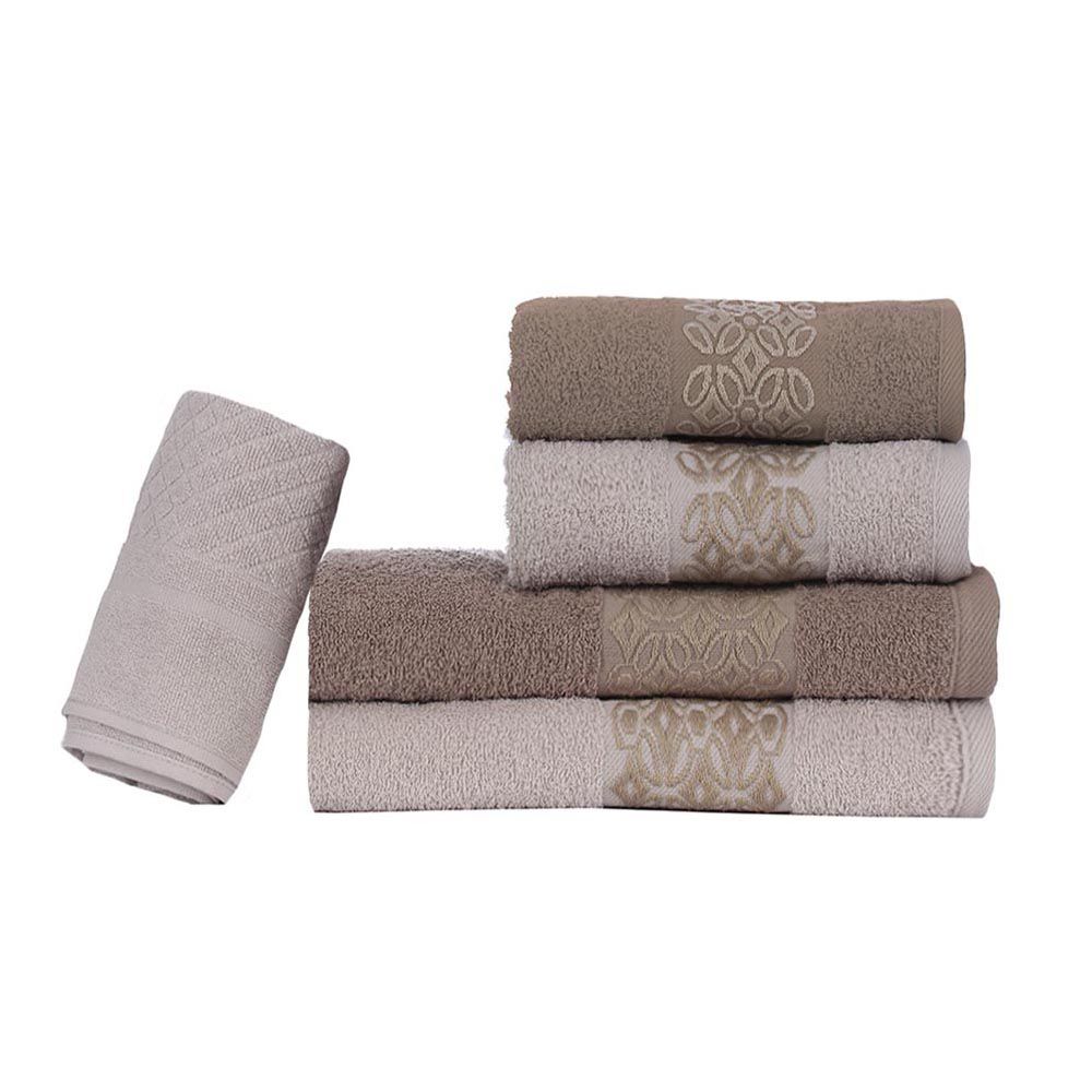 Jogo de Banho Bordado Jacquard 5 Peças Caqui/Fendi Aslan Sonhare Prata Sultan