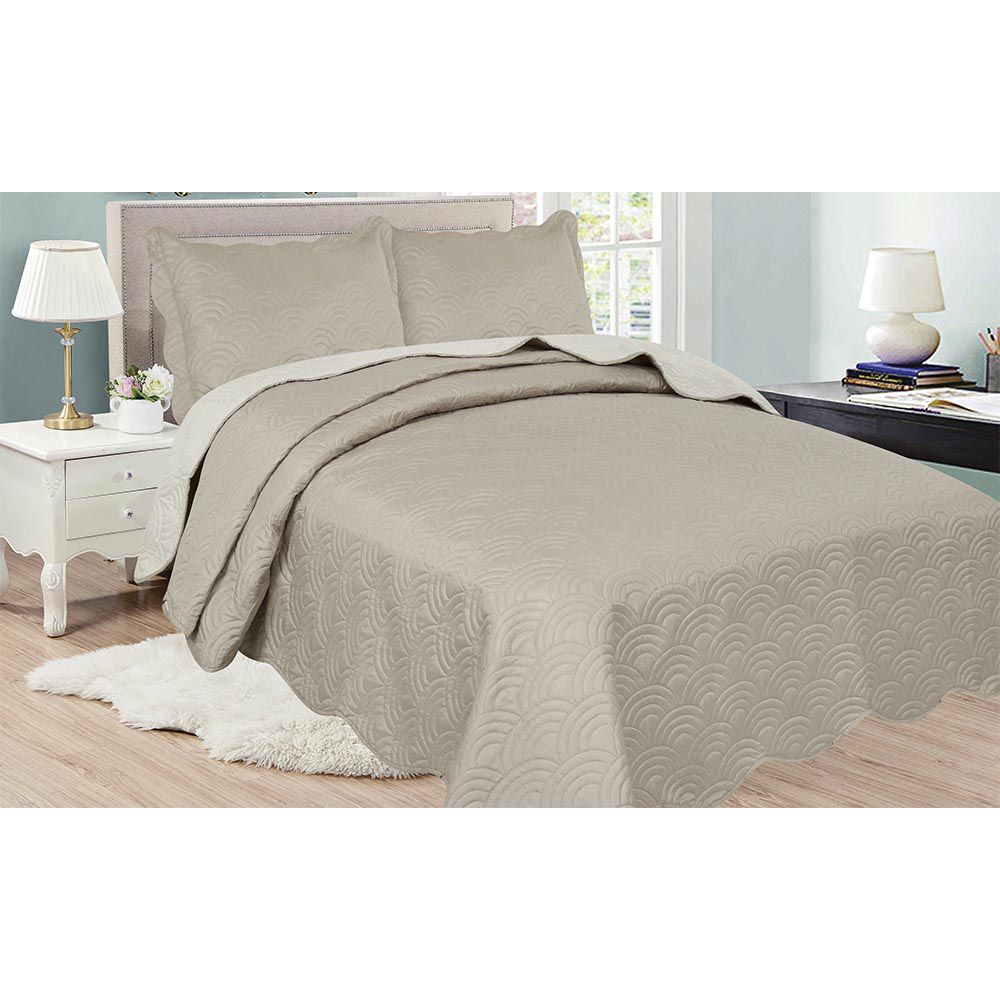 Kit Cobre Leito Colcha Lisa Casal 3 Peças Duda Caqui Realce Premium